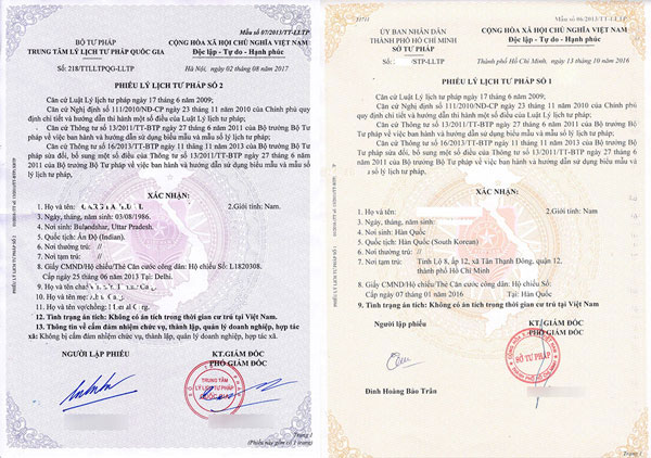 Phân biệt phiếu lý lịch tư pháp số 1 và phiếu lý lịch tư pháp số 2